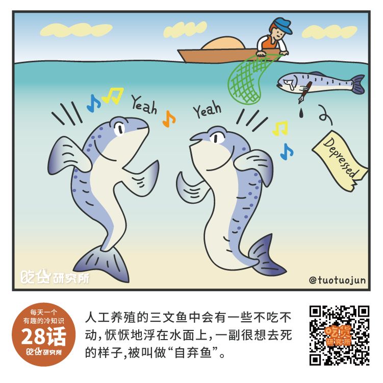 自弃三文鱼:对外来刺激包括投食无动于衷,始终漂在笼边的水面附近,随随便便就能捞起来……