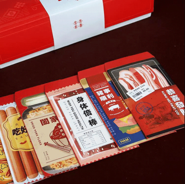 里面不仅有香味诱人的肉肉可以吃,还有搞怪有趣的猪年春节限定红包可以拿,光是看着就忍不住想要抱回家!顺便说一句,腊味礼盒红包款限定500份,先到先得哦!