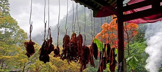 只有这样做出的烟熏腊肉才能紧致却不干柴,脂香四溢、晶莹剔透、肥而不腻。 咬上一口,肉香、脂香与柴禾的熏香在口中融合,让人欲罢不能。
