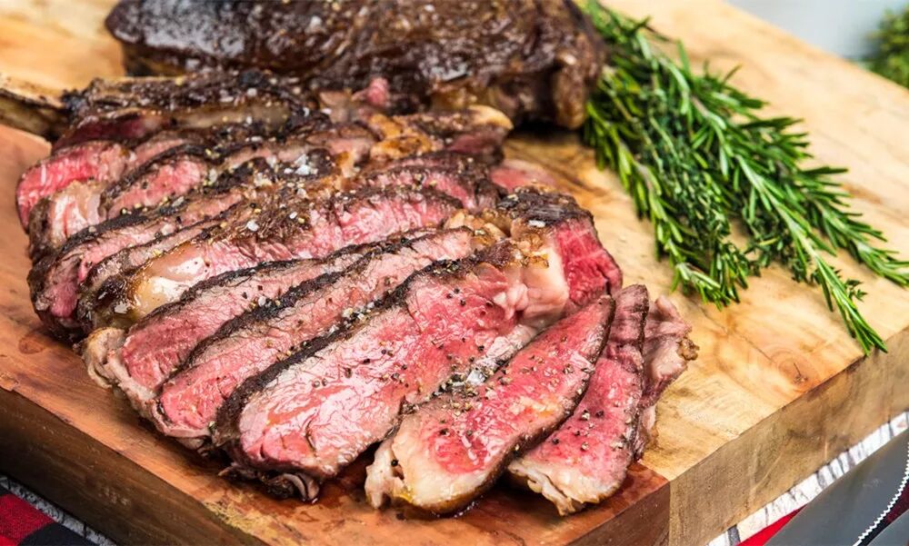 我们需要的是静静等待,让高温的牛排缓缓降温,肌肉纤维慢慢舒张开来,增大的细胞间隙重新“吸收”回肉汁,保留到入口的那一刻,通常厚切3cm的肋眼醒6~12分钟就可以了。醒牛排时需要注意保温,可以用锡纸松松包裹住牛排或置于50℃左右的烤箱内静置。尤其需要注意的一点就是,醒牛排时最好悬空或放置在烤架上,这样滴落的肉汁不会将宝贵的焦化外壳泡软,这可是辛苦获得的精华。
