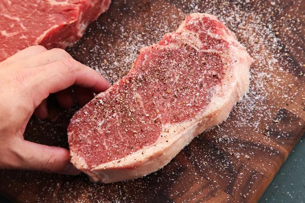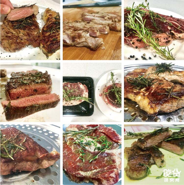 坦率地说,如果牛排厚度小于1.5cm,想要到得到“肉汁”和“焦香”并存的牛排其实难度比较大,因为薄牛排从“柔嫩”跨越到“干硬”区间的窗口时间实在是太短了,可能不超过1分钟。因此,原切牛排最好能有适当的厚度。
