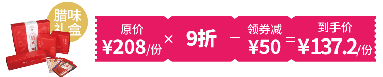 除了腊味礼盒普通款,现在还有2019春节限定腊味礼盒红包款——腊味礼盒+猪事顺利红包,内含腊味礼盒与价值42元的猪年定制红包套装。限量500份,先到先得!