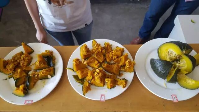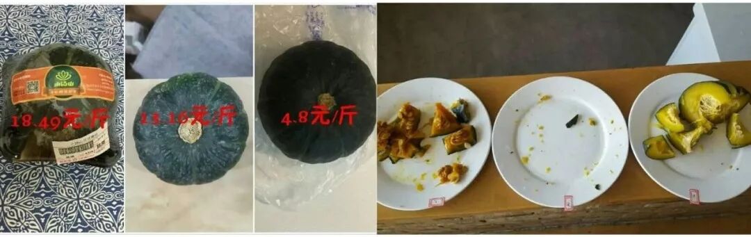 所长随机从超市买了两款“贝贝南瓜”,中间那个是所长卖的贝贝南瓜。蒸熟切块,分为1、2、3号。所长随机邀请了10名试吃员试吃,除了一位朋友最喜欢3号南瓜外,其余的试吃员均认为2号南瓜最好吃,并用光盘表明到底有多好吃。