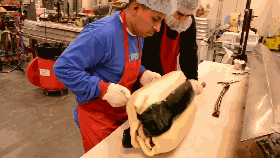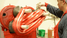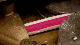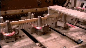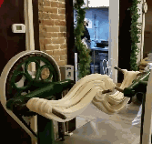 首先是在锥形辊床滚轮的作用下慢慢变细。与此同时,为了保证糖膏表面的可塑性,会有一个带有火焰喷枪的机械臂不断来回加热。