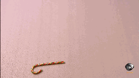 通过一个旋转装置将一端扭转180°,拐杖糖就制作好了。