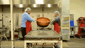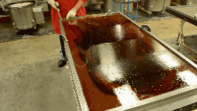 在一些生产规模较大的企业中,化糖采用的是夹层锅,并且会在夹层锅上方加上密封真空锅盖,采用蒸汽化糖,并通过制造真空环境降低糖的沸点。这样制作出来的糖膏透明度更好,也不会因为焦化变黄。