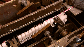 在装盒的时候,拐杖弯过来的一端会在一块弧形片的作用下发生旋转,最终弯钩“朝上”地放入到包装盒中。