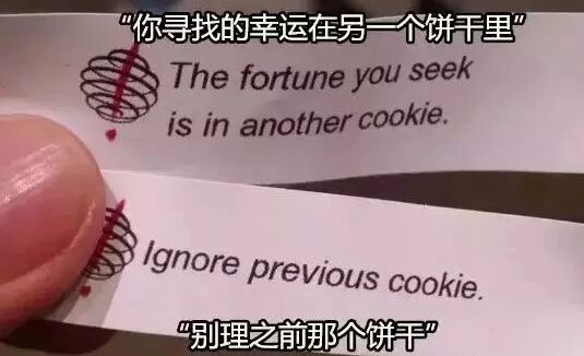 虽然这种预言饼干是如何锚定给了中餐仍然众说纷纭,但这些都不重要,至少这种神秘的东方力量很少让人失望过。