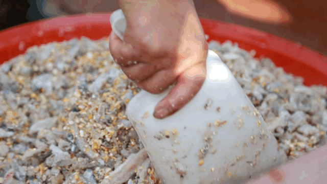 蟹农傍晚时分开始给大闸蟹喂食
