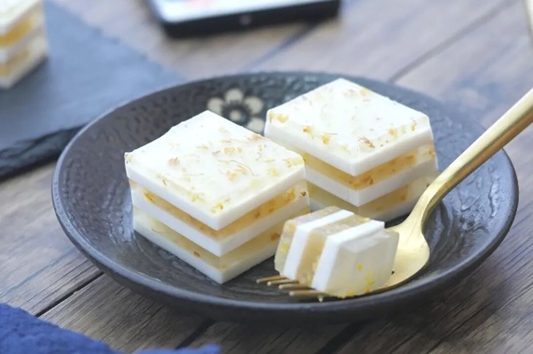 在长江以南的广大地区,桂花糕已经传承了几百年。人们不满足于米粉和蜜糖的简单结合,别出心裁地将鹅黄色的桂花入糕,取其香留其味。至于样式,也不尽相同。有的是金黄一体,有的是夹心状层次感分明,有的则是白米糕撒一层蜜桂花。