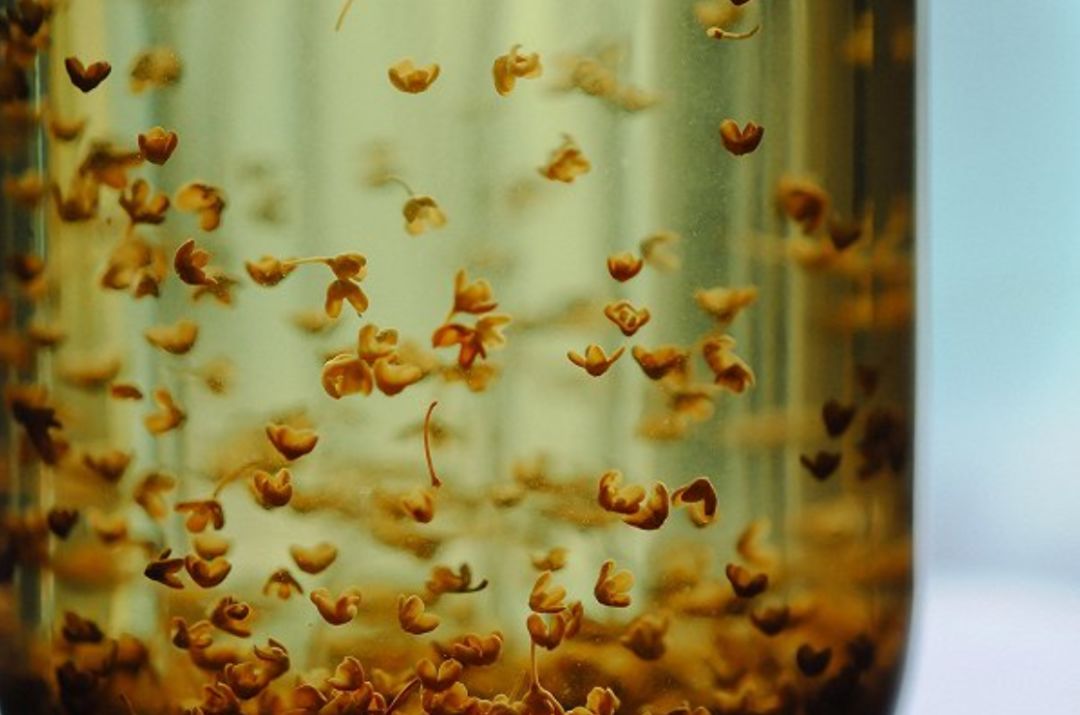 再偷懒一点的自制桂花茶,就是抓一把干桂花泡水,用热水把桂花的香气一点一点地激发出来。