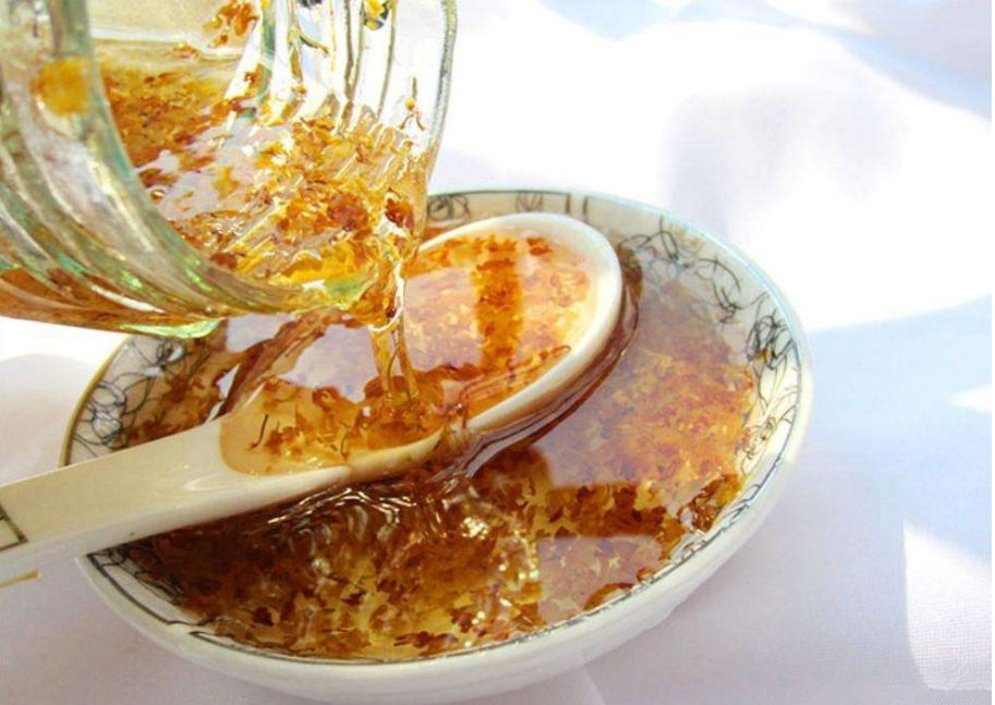 花绽了新红也会凋,饕客的嘴儿永不停。桂花娇嫩,摘下后没几天就变了颜色,除了晒干保存,最常见的是做成糖桂花者蜜桂花。桂花清洗干净,与白糖或蜂蜜同腌,桂花的色和香被牢牢锁住,经过时间的修炼,进化成一样调味利器。