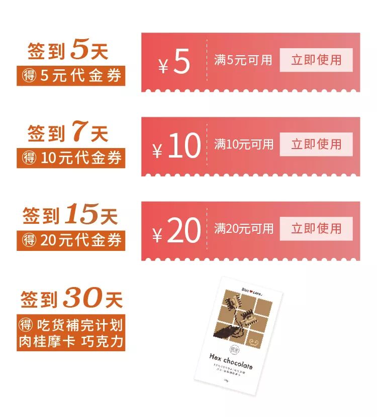 即日起,每天签到打卡就能get吃货研究所店铺代金券!