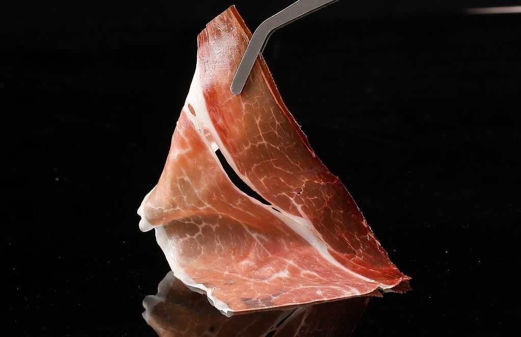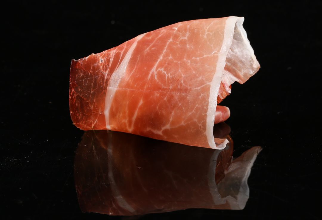 晶亮莹润的宣威火腿片,入口后,柔滑的肌肉和齿舌纠缠,历经3年熟成后分解出的大量氨基酸,变成一颗颗在口腔里放肆释放鲜香的炸弹,香气直冲头顶,让人不由自主闭上眼睛细细品尝。在油脂的香气和火腿的咸香中,还隐隐透着一丝甘甜。