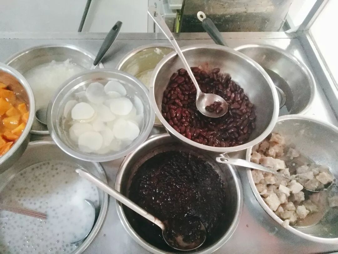 甜汤店里的每种甜品都是精心熬制好后分别盛放,一年四季都可以吃,夏天解暑,冬天暖身。
