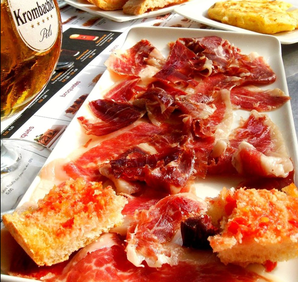 作为西班牙的美食界瑰宝,它由西班牙本地的黑毛猪制成,而黑毛猪的主要食物是橡果。由于伊比利亚火腿本身产量极少,制作时间也是相当的长,所以价格自然是一般火腿无法比的。像陈年佳酿一样,伊比利亚火腿的价格也会视年份而定,这也决定了,伊比利亚火腿不会经常出现在餐桌上,甚至也很难出现在寻常餐桌上。