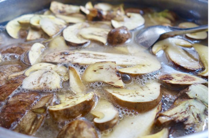 晒干的牛肝菌料理方法也很多样,用来炒菜、做烩饭最适合不过,还有煮汤,据说是会让人念念不忘的一碗汤。