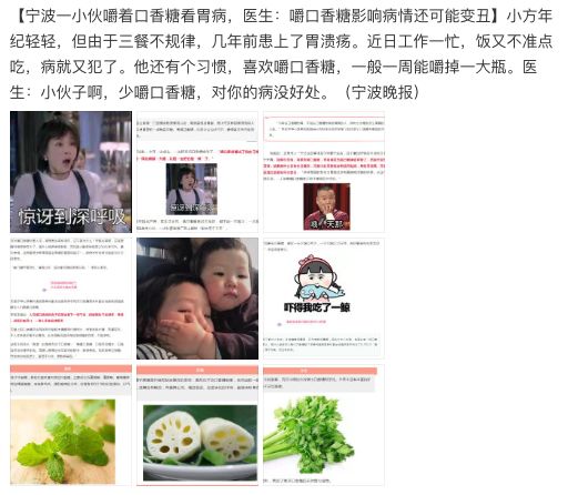 实际上,在这则新闻中已经明确写道,这个患者前几年就已经有胃溃疡病史,只不过最近又发作了去医院看医生,医生询问了近期的饮食情况,他刚好最近吃了口香糖。于是医生就说让他少吃点。但是,这并不表示就是口香糖导致的胃病,他本身就是老胃病患者了。