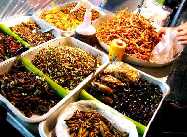 现代人对于食用昆虫的看法不一。在西方社会,人们通常认为昆虫极度倒胃口,又脏又带病菌。然而在很多其他文化中,人们多多少少都会以昆虫为食,有吃幼虫的(不那么脆);更多的是吃成虫,很多民族都爱吃成虫脆脆的几丁质外骨骼,还会油炸后撒上调料,使其更酥脆。