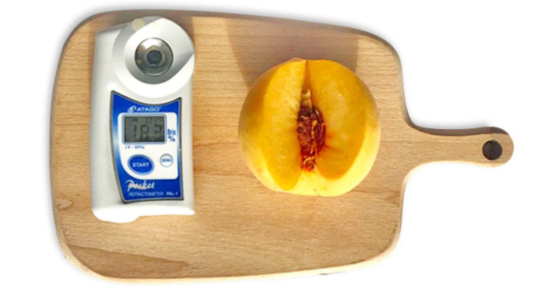 要知道常见桃子的含糖量范围只有9~12%左右,而我们找到的晚熟黄桃的含糖量甚至达到了16-18%,已经和荔枝差不多了!这些数据直观的表现就是晚熟黄桃吃起来特别甜,这种甜不是单纯的甜腻,而是均衡了桃子特有的香气,咬一下口齿留香,忍不住就会咬第二口第三口......