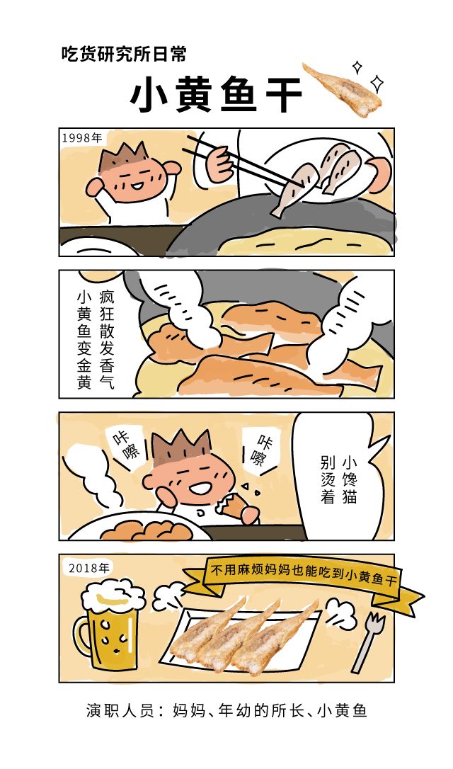 如今,小馋猫长大了,依然很爱各种小鱼干,但看似简简单单的小鱼干,却很难找到香香酥酥吃起来满足感很强的。找了很久,所长终于找到一款味道和口感都合心意的小黄鱼干,更棒的是,这个小鱼干居然用了非油炸的新工艺,吃起来一点也不油腻。嘴馋了来两条,下午饿了来两条,晚上追番追剧,吹着空调喝着啤酒再来两条,作为“馋猫”的人生简直不要太幸福!