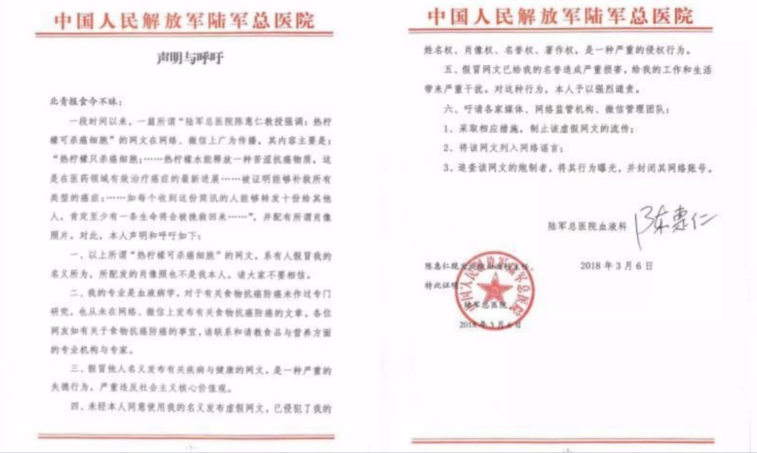 另外需要提醒大家的是,这则强调是某知名医院教授发布的抗癌简讯与早几年前热传的“热柠檬水能抗癌” “热鸭梨水能抗癌”的内容基本一致,只是柠檬、鸭梨被换成了苦瓜而已,完全是一些营销号复制谣言套路在忽悠大家。这条消息中的教授早就发布过相关声明,表示《抗癌简讯》是有人冒充其名义所为,其本人的专业是血液学,未做过有关食物防癌抗癌研究,也未曾在网络上发布过相关文章。
