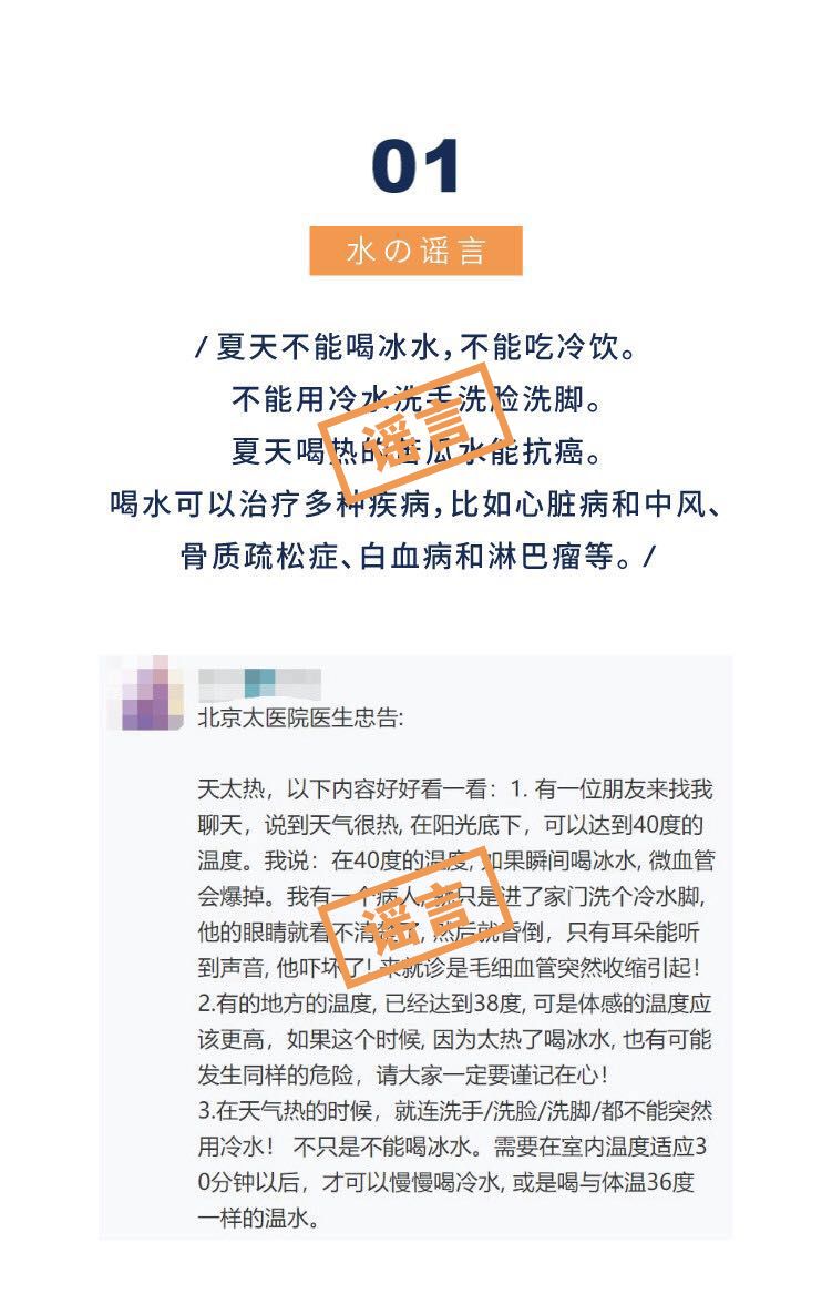 3、还有说喝水能治这病那病的,也是谣言。喝水主要是为了补充水分,并不会起到抗癌治病等健康功效。