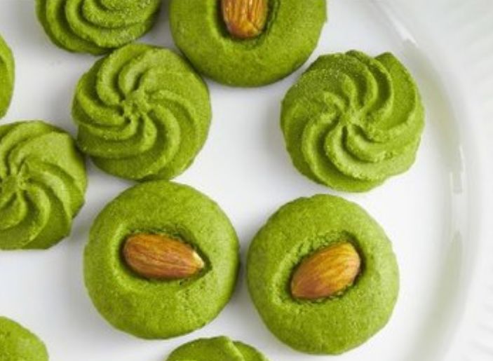 一整颗巴旦木嵌在翠绿的小酥饼上,清甜微咸,香而不腻,酥松可口,咬一口,抹茶包裹着坚果的香气,形成奇妙的结合,香气在舌尖跳跃,随时随地让你感受到葱郁森林的气息。