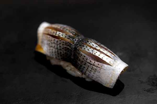 除了精细的去鳞、切分、剔骨等步骤,作为光り物的小鳍极易腐坏,所以一般采用盐、醋腌渍的手法。但是不同产地、不同季节、不同尺寸的小鳍肉质迥异,寿司职人需要完全依据经验来把控腌渍和醋洗的时长,腌渍技艺高低之下不过分分钟,优秀的小鳍寿司咸酸轻盈,点到即止,口感嫩弹而悠长,因而小鳍握寿司也被视为江户前寿司界的“横纲”......