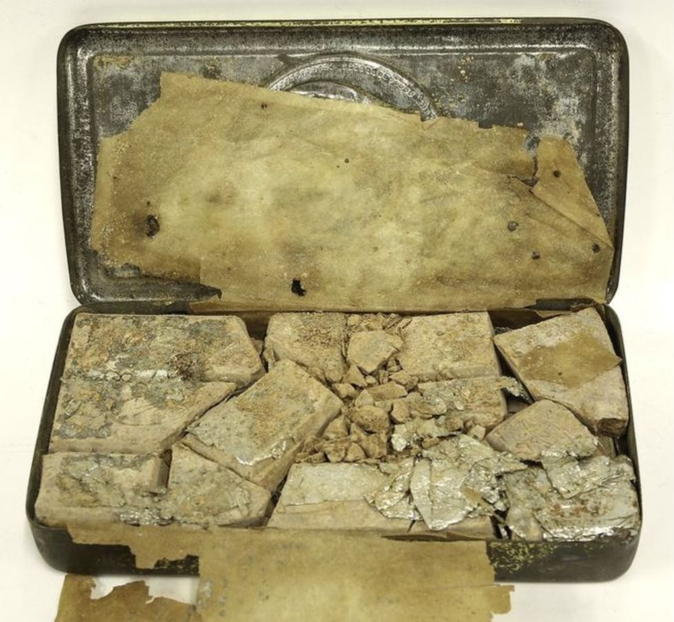 这批巧克力,据说一共做了12万盒,全部送往了南非前线。据说,一些士兵吃掉了女王的礼物,也有一些出于对她的敬重,将礼物又原封不动地带回英国,分赠亲友,甚至传给儿女,就有不少留在了民间。今年6月,一名女子在收拾自己的老铺子时(该铺子早在五十年前就关门了),意外发现了这一盒巧克力,惊讶之余,决定将其拍卖,交给收藏家们收藏。不消说,放了一百多年的巧克力,当然是没人敢吃了。也有食品专家认为,当时这个铁盒密封很好,加上其中的可可脂含量极高,所以才保存到了今天。据悉,这一盒巧克力将于近日在英国拍卖。