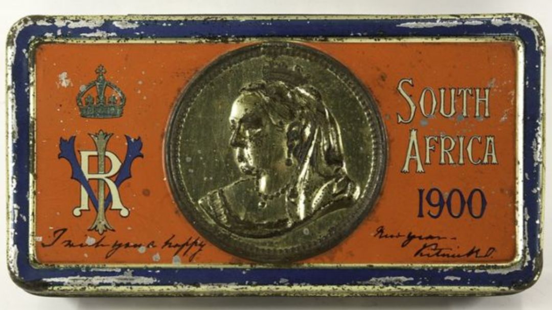 那个时候,英国正在南非打仗,也就是史称的“第二次布尔战争”(Boer War),争夺殖民地的所有权,战争双方都付出了沉重的代价。这场仗从1899年打到1902年,英军给拖得疲惫不堪,士气相当低落。于是,当时的英国女王维多利亚,就想出了一个很好玩的主意:拿自己的私房钱劳军。虽然皇室每年有固定的收入,但英国前后往南非派了几十万士兵,人吃马喂的,那真是花钱如流水啊!皇室的这点小钱钱,恐怕请大家吃一顿饭都不够的……所谓山人自有妙计,维多利亚女王当时的威望非常之高,深得英国民众爱戴,所以她选择了“礼轻情意重”的策略,以她个人的名义,送给士兵们小包装的巧克力。