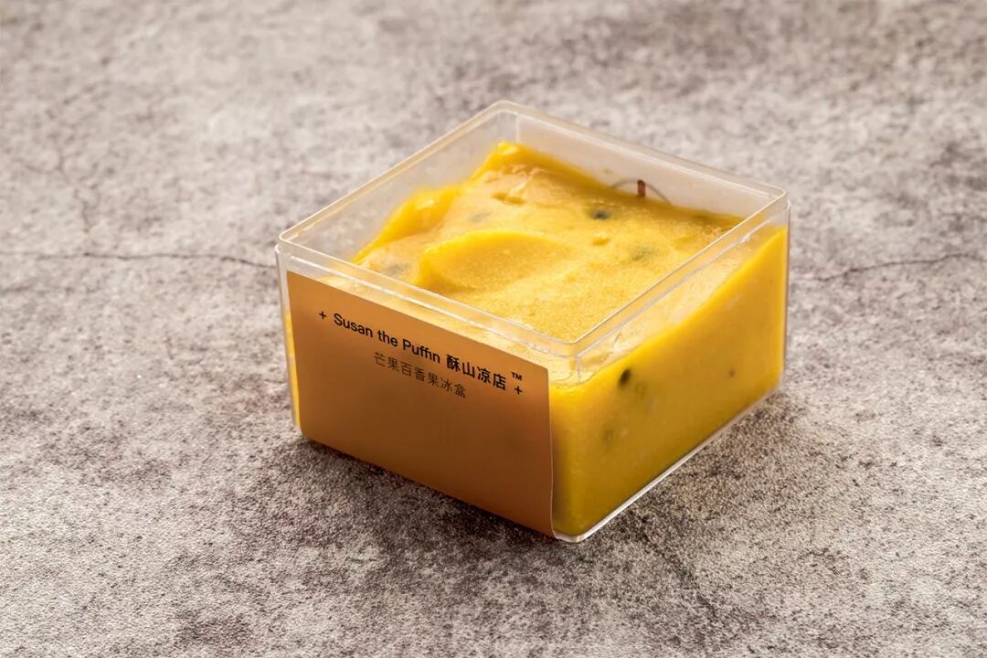 百香果因其果汁散发着菠萝、柠檬、芒果、芭乐等香气而得名。这款百香果雪葩,采用纯百香果汁制作,最适合炎炎夏日解暑开胃,酸甜可口,其中的百香果籽更丰富了口感,嚼起来略带坚果的焦香。