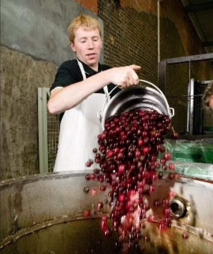 很多欧洲酸啤酒在酒厂酿制的时候或者在喝的时候会加入一些甜味剂或者其他味道的添加剂来增加风味。但乐蔓樱桃啤酒不一样,它直接加入真樱桃果肉来增加风味,每百升酒液要加入13公斤的樱桃鲜果,果肉在酿造好的酒液中至少浸泡1年进行陈化。随着时间的沉淀果肉慢慢发酵,樱桃的味道和啤酒逐渐完美融合,乐蔓樱桃是用时间和辛苦酿造出的醇正美味。