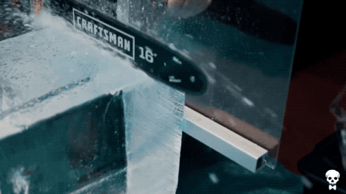 还有另一位(看起来就很有钱的)大佬,是使用电锯,没错,用电锯来切削巨型的冰块。