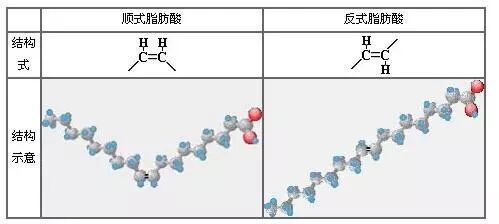 脂肪是由脂肪酸和甘油形成的甘油三酯,根据结构不同,脂肪酸也有不同的名称。反式脂肪酸是其中的一种,因其化学结构上有一个或多个“非共轭反式双键”而得名,是一种不饱和脂肪酸。