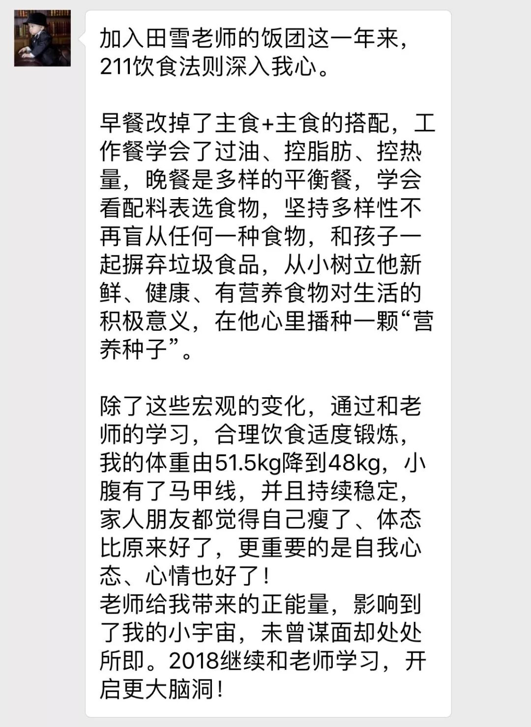 学员"烈烈头",从怀孕期间开始严格执行田雪老师的饮食计划,生完宝宝后身材恢复的很快、很好。