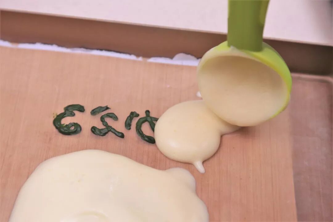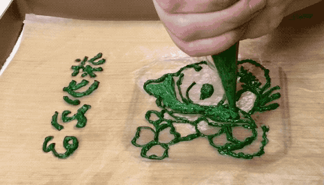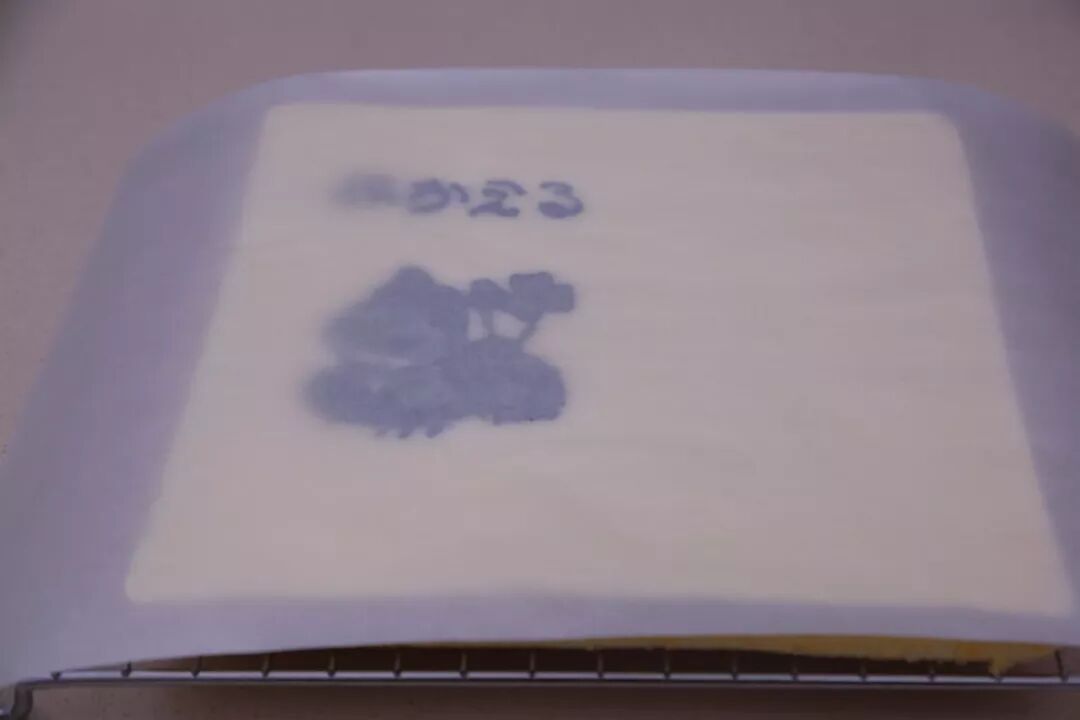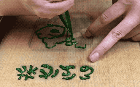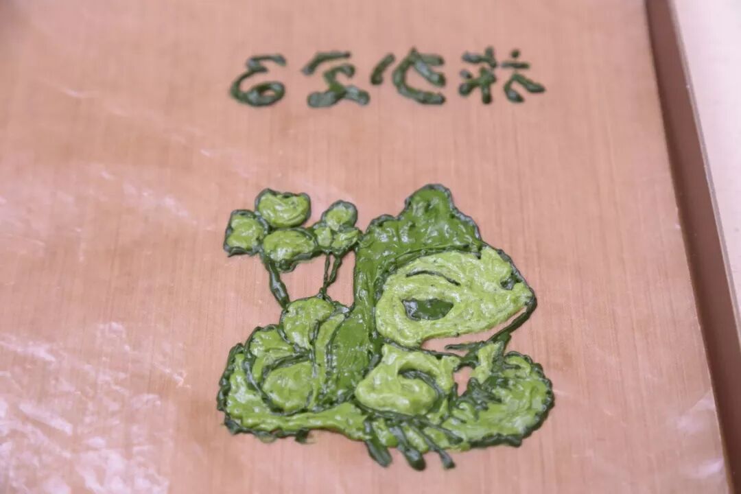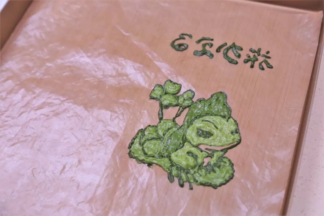 ⑤将画好的图案冷冻,至蛋糕卷面糊完成。