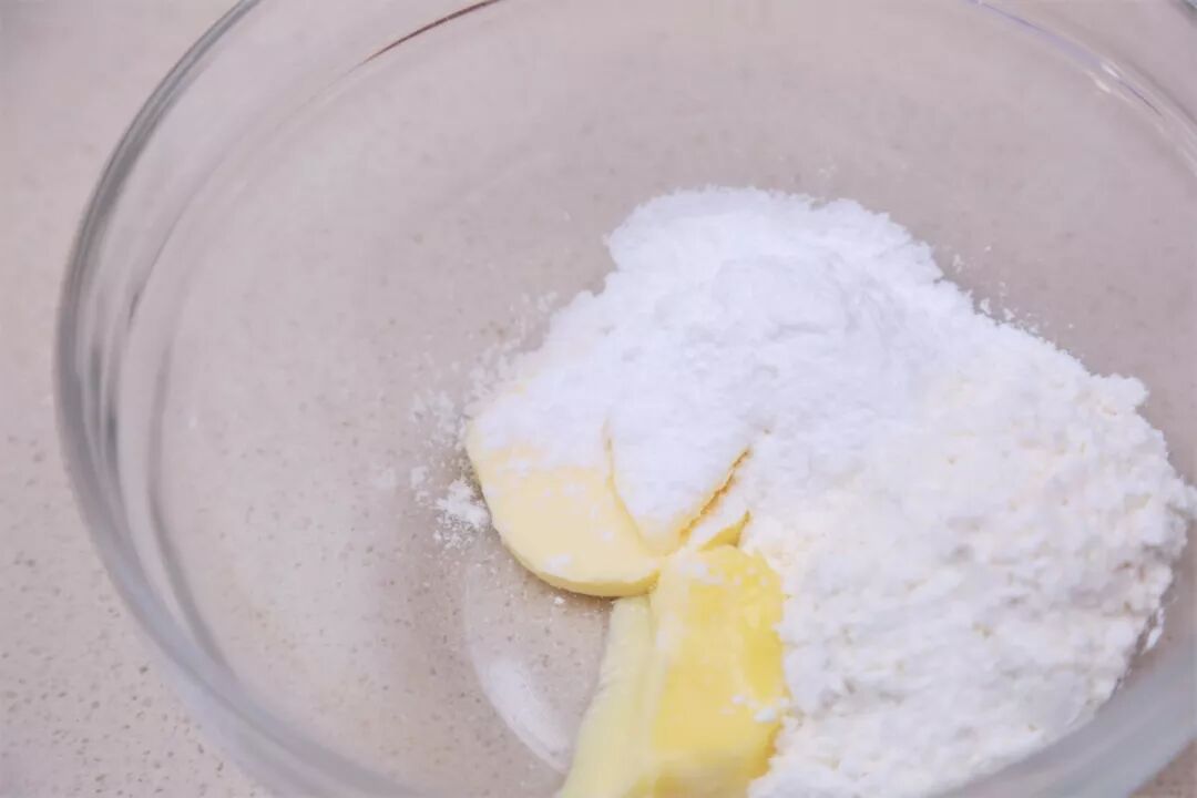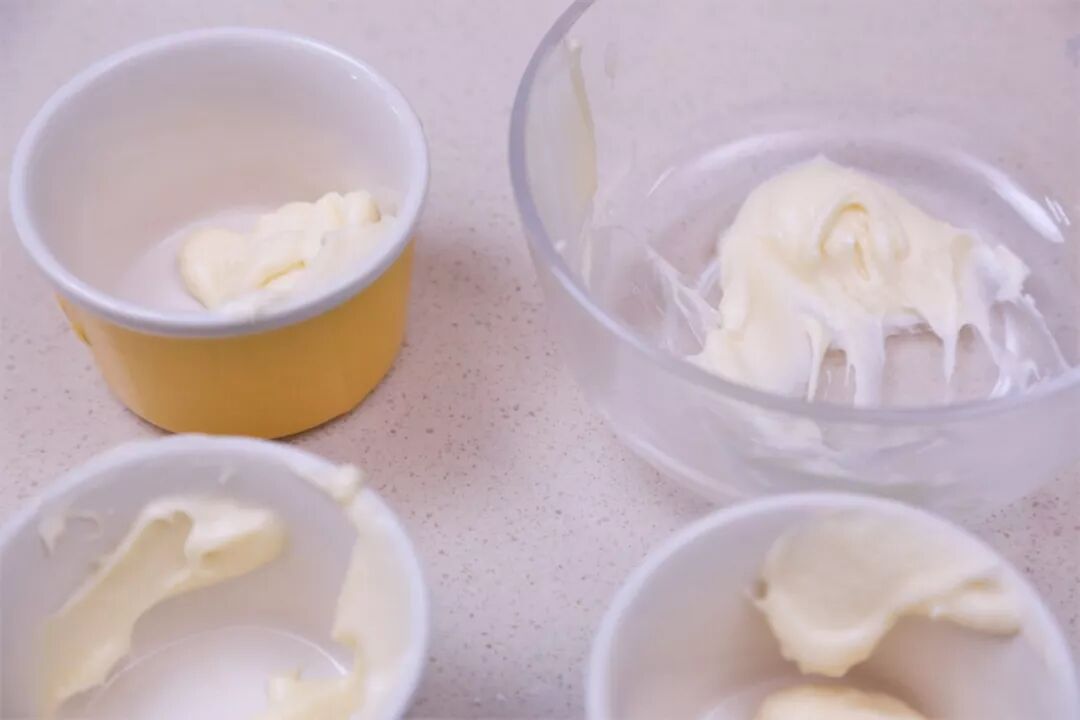 准备工作:将黄油、奶油奶酪取出,在室温下软化或微波软化至手指可轻易按出痕迹。