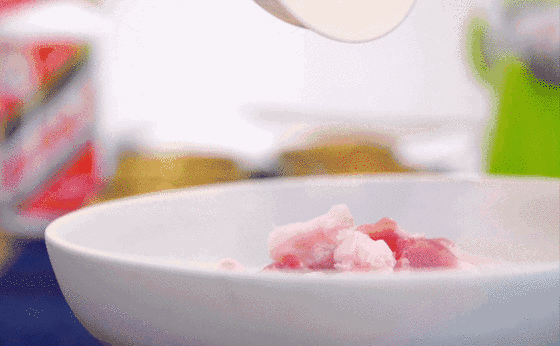 精选黑毛猪腿肉,手工切块,剔除筋膜