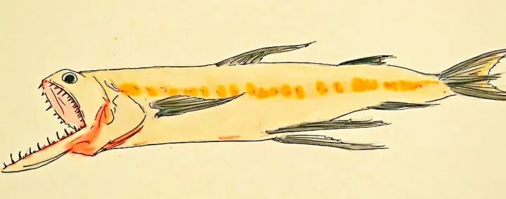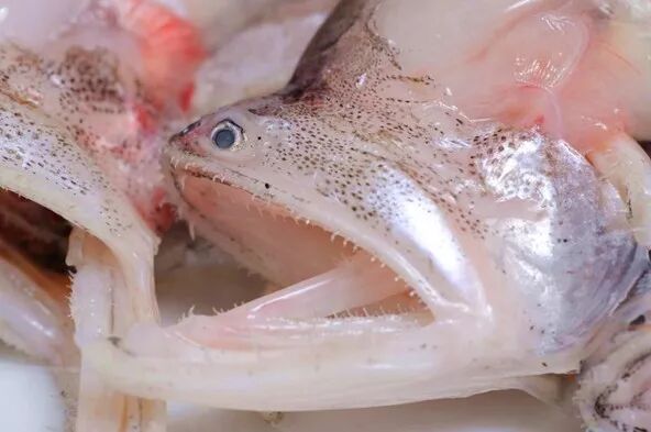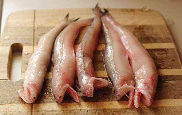 龙头鱼是一种长相不拘小节的鱼类,头背棕灰,腹部乳白,鳞片少得可以忽略,鱼鳍纤薄,通体柔软,肤如凝脂,几近透明,如此娇嫩柔软的身躯却偏偏生有一张反差极大的凶残大口,两颌密布细小而尖锐的牙齿,乍一看酷似传说中的龙首,龙头鱼也因此而得名。