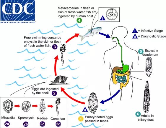 肝吸虫的生活史。 图:cdc.gov
