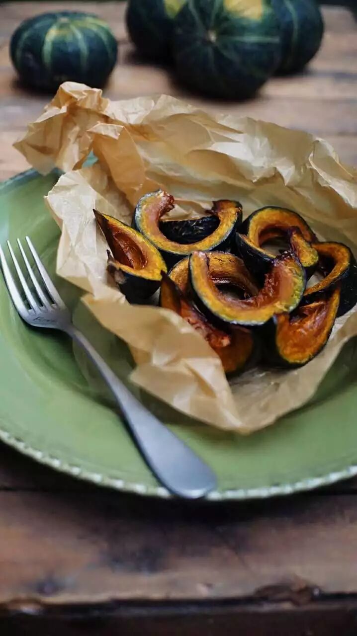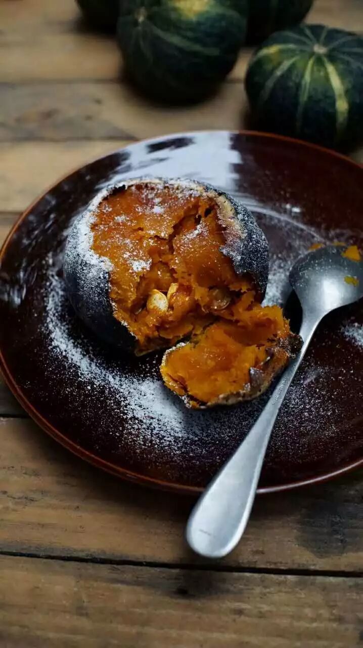 洗净、去籽,放入烤箱.....散发着焦香的南瓜
