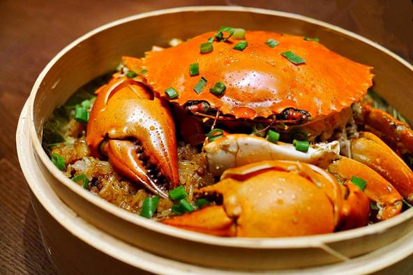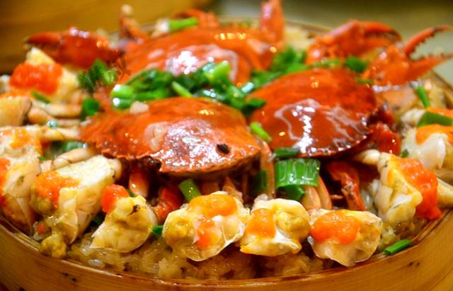 待到母蟹卵巢发育成熟,蟹黄转为诱人的橙膏,就成了名副其实的“膏蟹”或“红蟳”,集海蟹体大肉厚和河蟹鲜甜醇香优点于一身,此时青蟹的口感也达到巅峰,闽地人习惯将红蟳铺在糯米饭上同蒸,潮汕人则喜欢将红蟳直接生腌,此时的青蟹如迷药般让人欲罢不能。