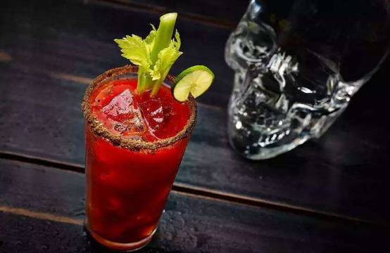 在西方的文化里,血腥玛丽不仅仅是一款鸡尾酒的名字,更是代表着恐怖的传说和一段血色的历史,在万圣节里的趴体里点上一杯血腥玛丽,简直再合适不过了。血腥玛丽以伏特加酒为基酒,伏特加纯粹的酒精感,为血腥玛丽注入了灵魂,而其“身体”是大量的番茄汁以及各种调料,比如黑胡椒粉、辣椒油、干辣椒粉、柠檬汁等等兑合而来。番茄汁的鲜红颜色,配合了名字中血腥的形象,从配方来看,这款鸡尾酒并不是所有人都能喝的上来的,口感上除了洋溢着番茄汁的风味之外,可以讲是甜、酸、苦、辣四味俱全,非常刺激。
