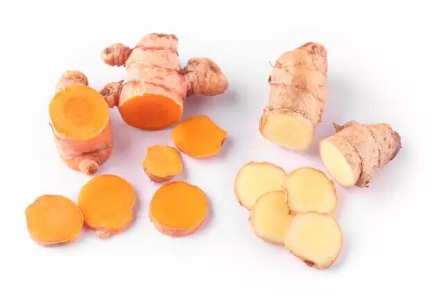 生姜和姜黄分别来源于姜和姜黄的块茎,将干燥的姜黄块茎磨粉,就可以得到姜黄粉。图片:shutterstock.com