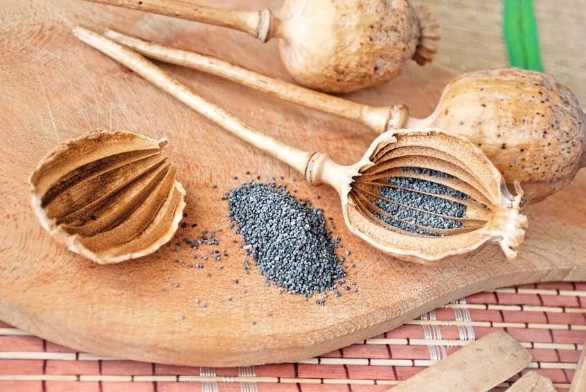 罂粟壳表面较为光滑,有典型的“皇冠”结构,内部有黑褐色种子 图:123rf.com.cn正版图片库