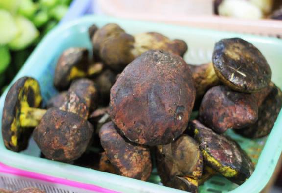 牛肝菌算是古今中外被海内外众多美食家追捧的肉菇巨星之一了,来到云南的人应该没有不想去品尝一次的吧。想买新鲜牛肝菌,可以等大量雨水过后到大型农贸市场里转转,或者让(混熟了的)餐馆老板带你去菌子集散地蹲点。嫌麻烦的话,餐馆吃超市买,还有油浸盐渍干烤片等多种口味任君选择哟。