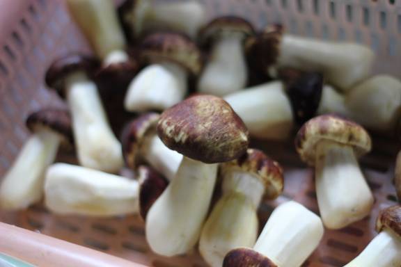 已经洗白白了的新鲜松茸菌 拍摄:马文