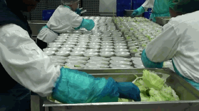 冷餐包括沙拉和水果。冷餐的保质期是24小时,这就要求工厂既要有严格的保鲜环境,还要工人能够熟练操作,节约时间。