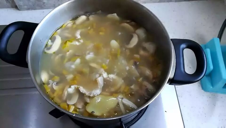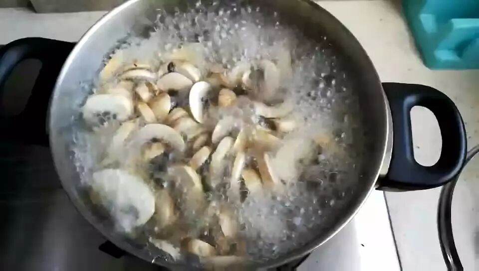 3、放入口蘑一同煮汤